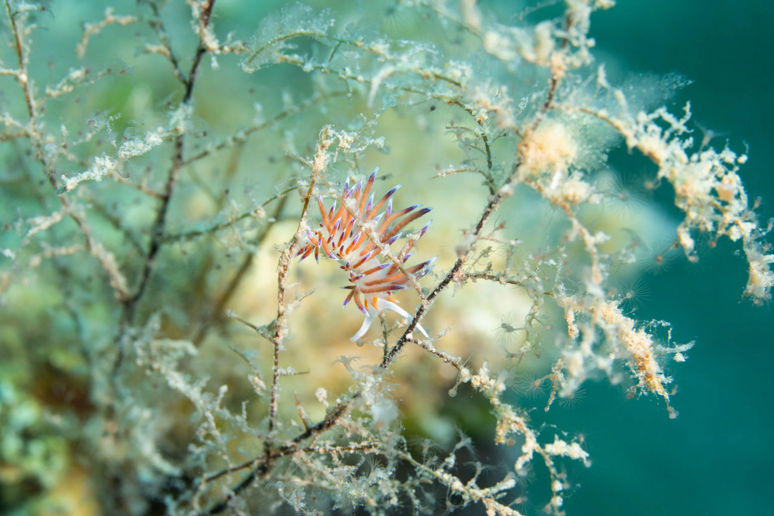 In an area where bottom trawling has decimated the reef system, these nudibranchs stood out against the backdrop giving hope of life renewed to divers passing by.