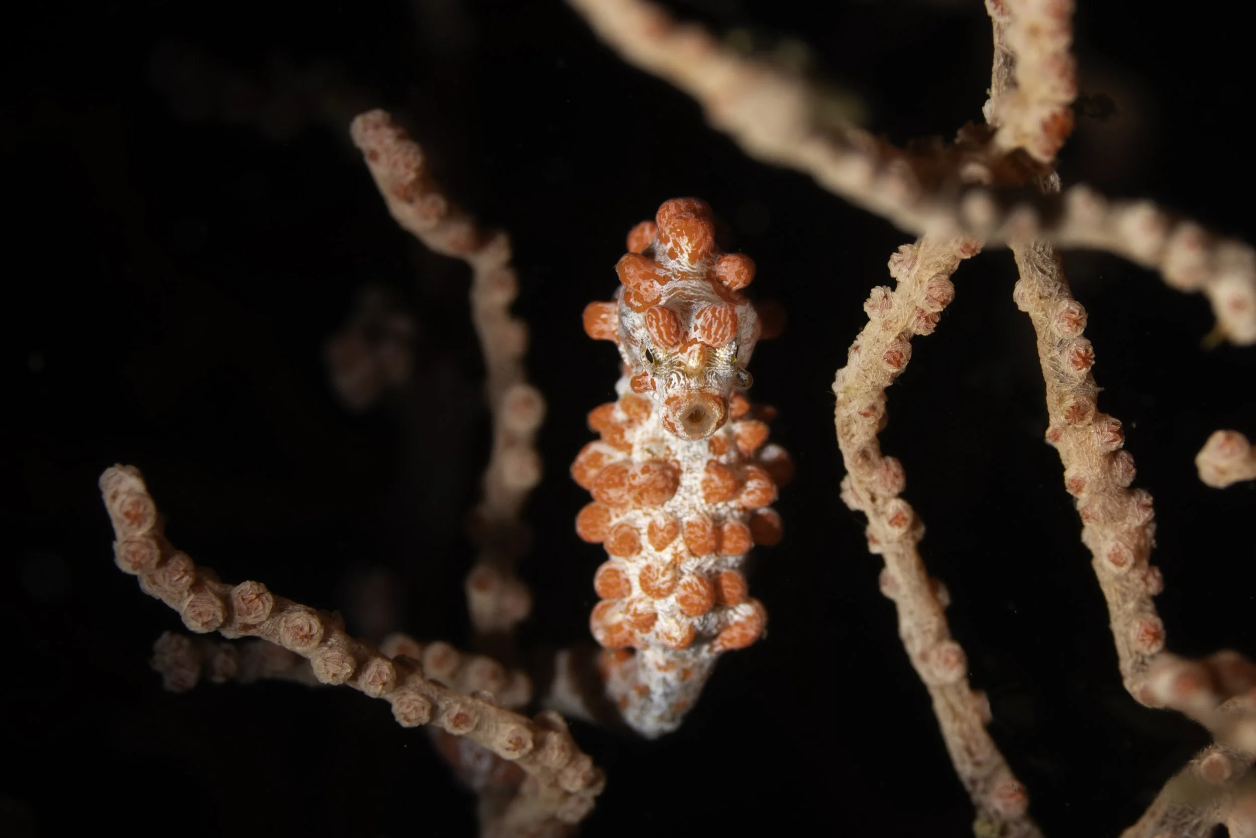 smaller than a thumbtack, nearly invisible among the coral it calls home—this pygmy seahorse is a master of camouflage. the reef is full of quiet miracles like this.